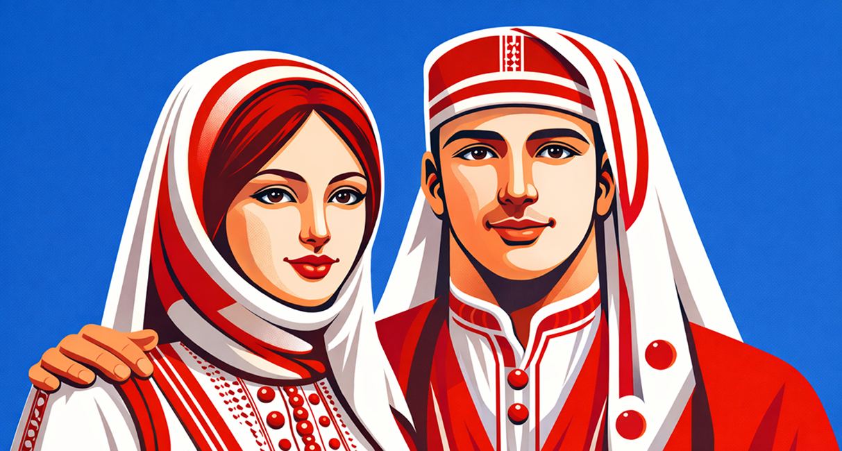 Не след дълго при Хуба долетял гълъб, който имал златен конец на крачето. Както се били разбрали Хуба и Баян избягали от лошия хан и достигнали водите на Дунав. Не знаели какво да направят. Само птицата можела да им покаже пътя, а те не знаели как да преминат на другия бряг. Баян взел бял конец, който Хуба вързала на крачето на гълъба. Пуснали птицата да полети, но в този момент се появили преследвачи от хунското племе, които започнали да ги обстрелват. Баян бил ранен от стрела и началото на конеца, който държал, почервенял от кръвта му. В този момент на другия бряг на реката се появил Аспарух с неговите войници. Хуните като го видели побягнали. Аспарух помогнал на Хуба и Баян да минат реката и ги отвел при своите войници. Взел конеца от Баян и белия му край завързал с червения. Закичил всеки един от своите войни с късче от този свещен конец. След това Аспарух застанал пред войската и признал, че той и неговите братя не са се вслушали в съвета на баща си и така са заплатили с кръвта си своето разединение. Заръчал червено-белият конец никога да не се разкъсва, защото тази окървавена нишка завинаги ще свързва българите. Оттогава на първи март всички българи се окичват с червено-бели мартенички, носещи им здраве, радост и успех.