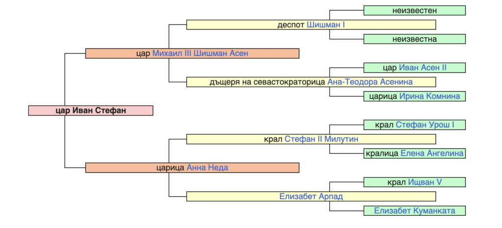 | Великден 1332 | ~31–33 | Сърбия/България | Брак: Стефан Душан – Елена (сестра на Иван Александър) | Сръбско-българско сближение; натиск Анна-Неда и Иван Стефан да напуснат Сърбия. |