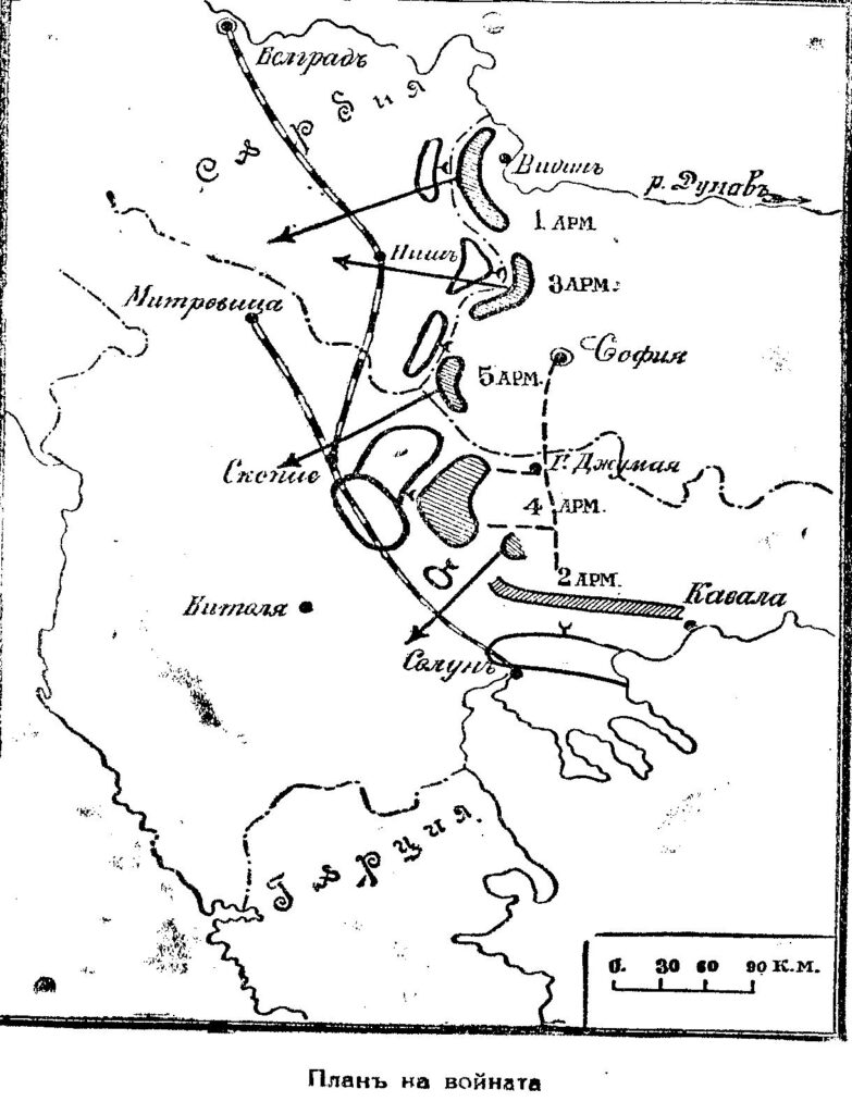Планът, изработен от генерал Савов и полковник Иван Нерезов, отразява именно тази логика. Той предвижда българската войска да се раздели на пет армии с различни задачи, като главното направление на удара се възлага на Четвърта армия. Под командването на генерал Стилиян Ковачев тя заема позиции в района на Щип, Кочани и Радовиш – изходна база за настъпление към сръбската Трета армия на генерал Милутинович. Замисълът се опира на тезата, че ако на този участък бъде нанесено достатъчно силно поражение, цялата сръбска отбранителна система в Македония ще бъде разклатена, а сръбско-гръцката координация – сериозно затруднена. По този начин България се стреми да компенсира численото и ресурсното си изоставане с бързина, изненада и концентриран удар по критично звено във вражеската система.