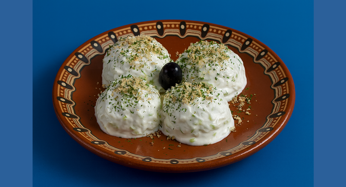 3. Смесване – В купа смесете цеденото мляко с краставиците, счукания чесън, зехтина, солта, орехите и копъра. Разбъркайте внимателно до хомогенност.