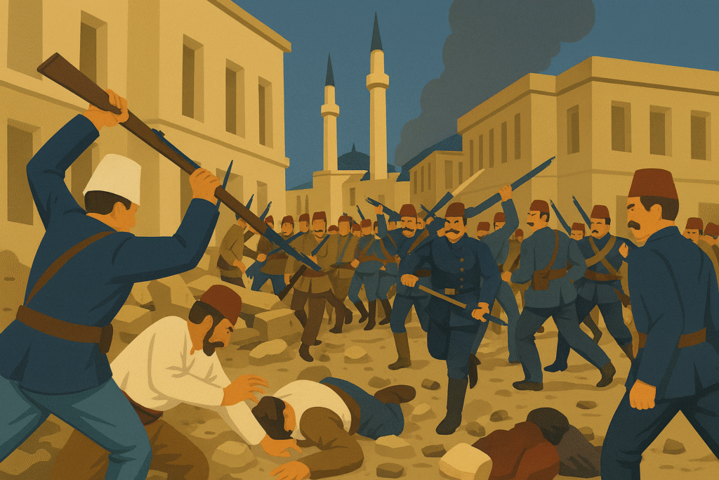 - Жертви: самите участници поемат по-голямата част от смъртоносния риск (няколко загинали Гемиджии). Сред цивилното население има убити и ранени; точният брой варира по свидетелства (прибл. десетина убити и над десет ранени са често цитирани през дипломатическите рапорти/преса).