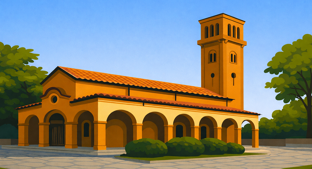 Църквата е типична трикорабна псевдобазилика, изградена от розов риолит – здрав и характерен вулканичен камък. Външността ѝ е монументална, а вътрешното пространство впечатлява с хармония и симетрия.